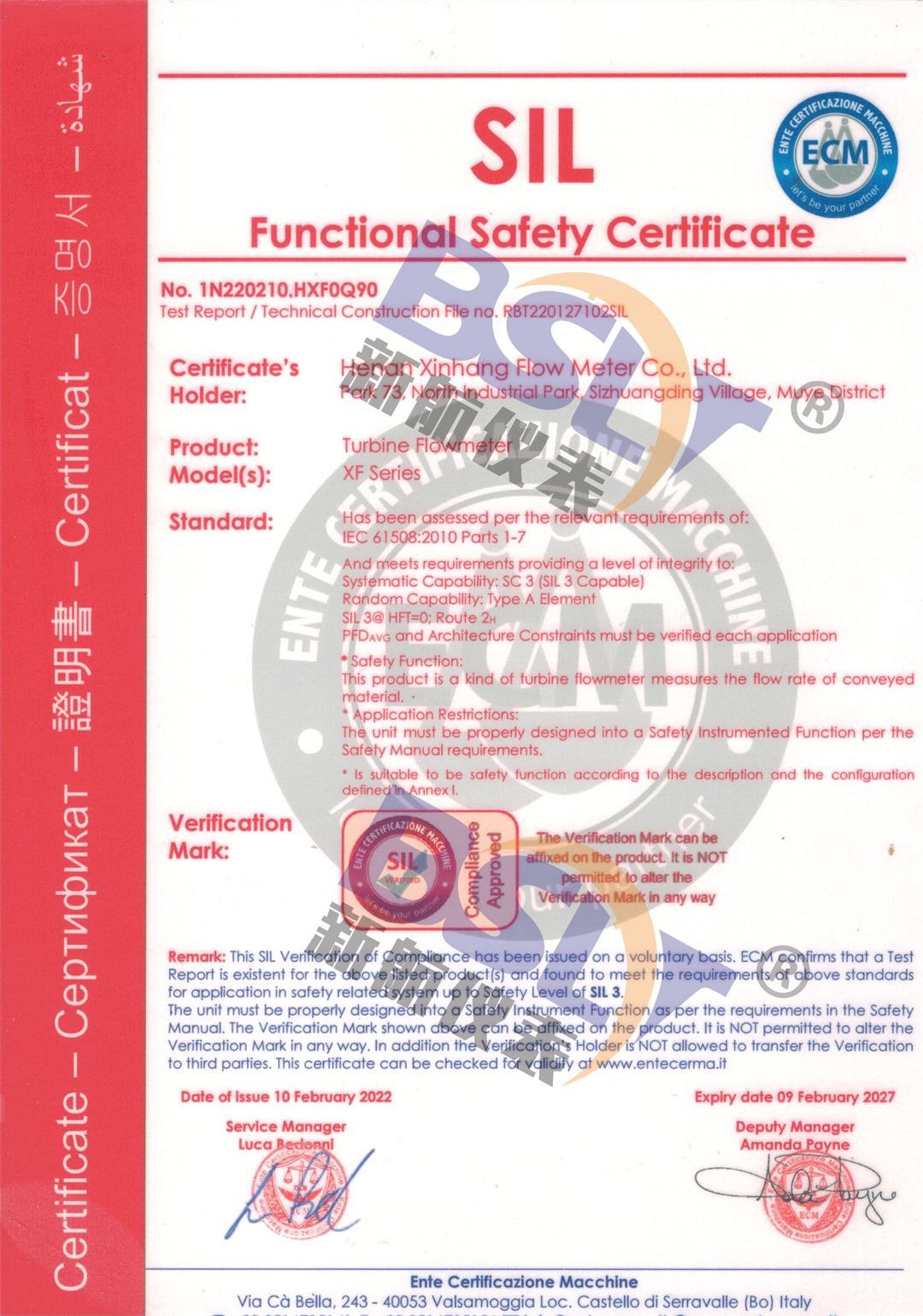 電磁流量計sil證書2